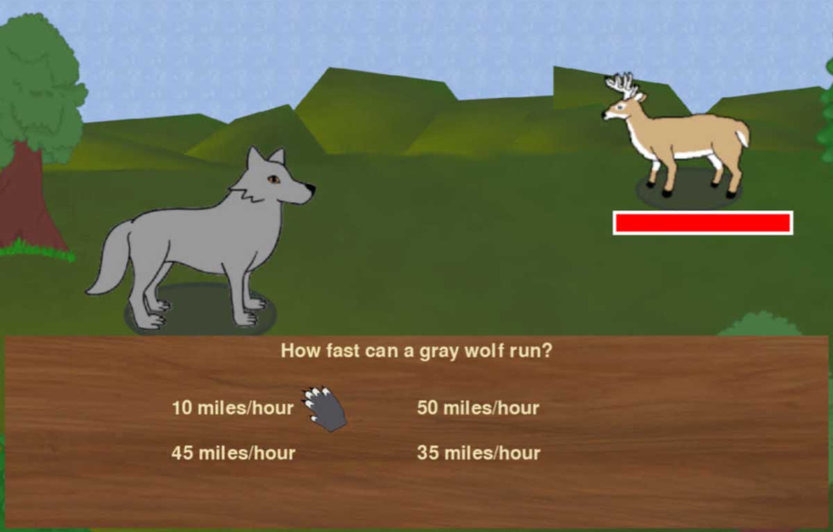 The goal of this project was simple: Wolf Park was looking for a way to enhance their education center and appeal to young children while staying true to their mission of educating future generations and inspiring them to protect the natural world. We worked alongside the park to ensure that every aspect of the game aligned with their vision. The park administration were very pleased with our delivered product; it was fun and engaging while also providing an enriching educational experience and remaining accessable for many kinds of children. Our contribution to their education center will allow them to expand their reach and promote the park’s mission.